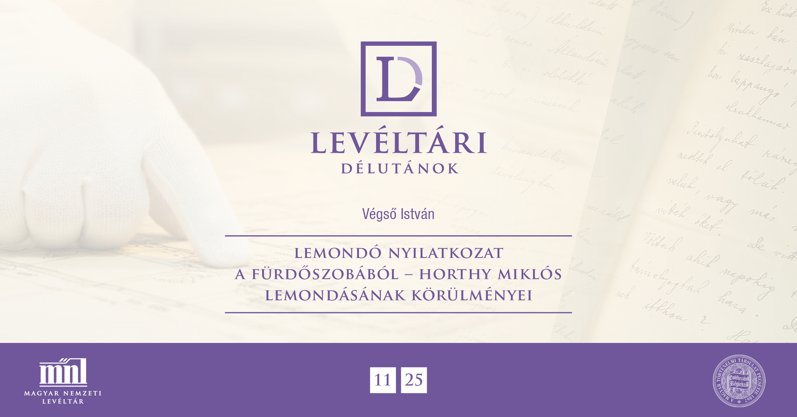 Levéltári Délutánok: Végső István – Lemondó nyilatkozat a fürdőszobából: Horthy Miklós lemondásának körülményei